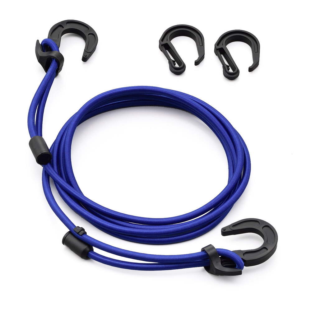 長さ調整式フック採用。荷物の量に合わせてコードの長さが調節可能。シンプルな調節機構で荷物の押さえ加減調整も簡単。ミニフック付きのコードエンド採用で、余ったコードもスマートに処理できます。・中間フック2個付き仕様:2500mm ブルー