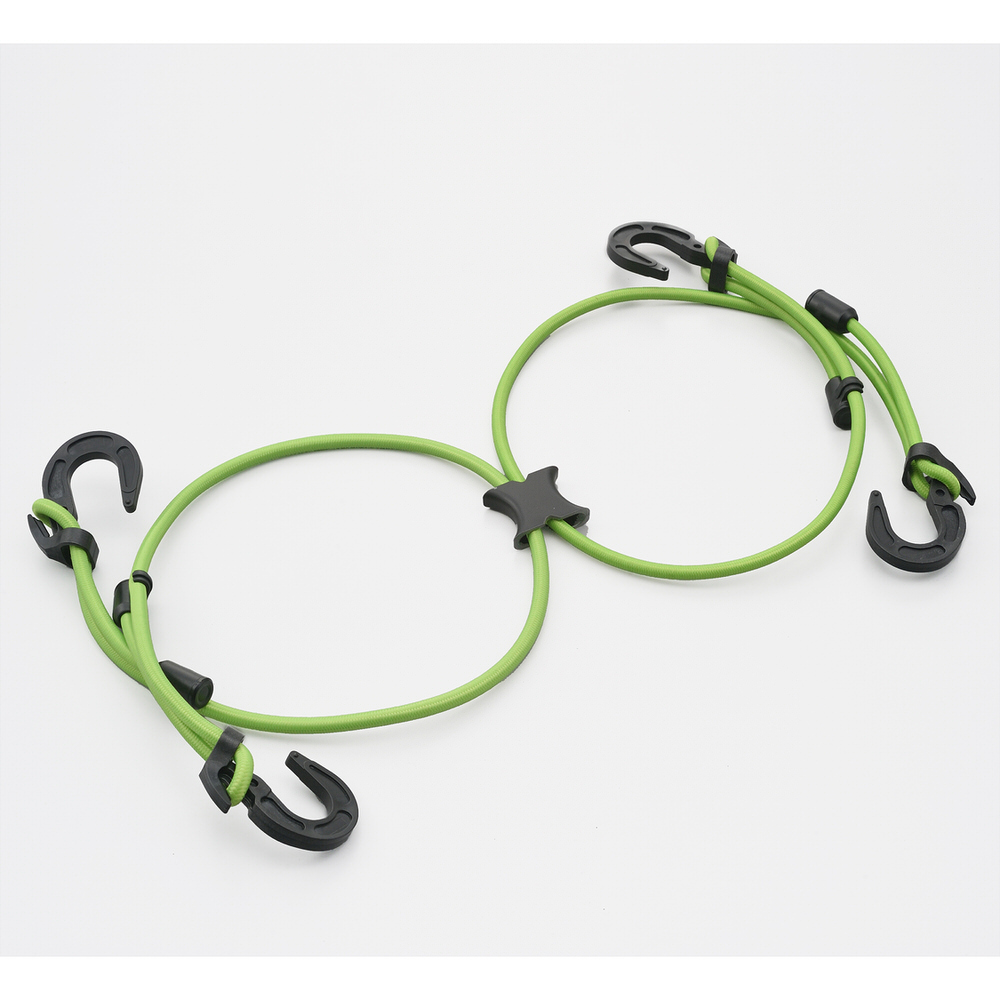 エックスタイプには便利なXエックスジョインターが付属。Xエックスジョインターからコードを取り外せば、2本別々にも使用可能で自由度倍増。エックス形状にすることで、ゴムコードへの負担も軽減。・Xジョインター1個付き。仕様:エックス(1000mm×2) ライムグリーン