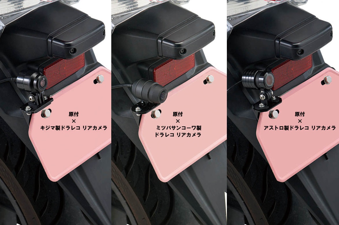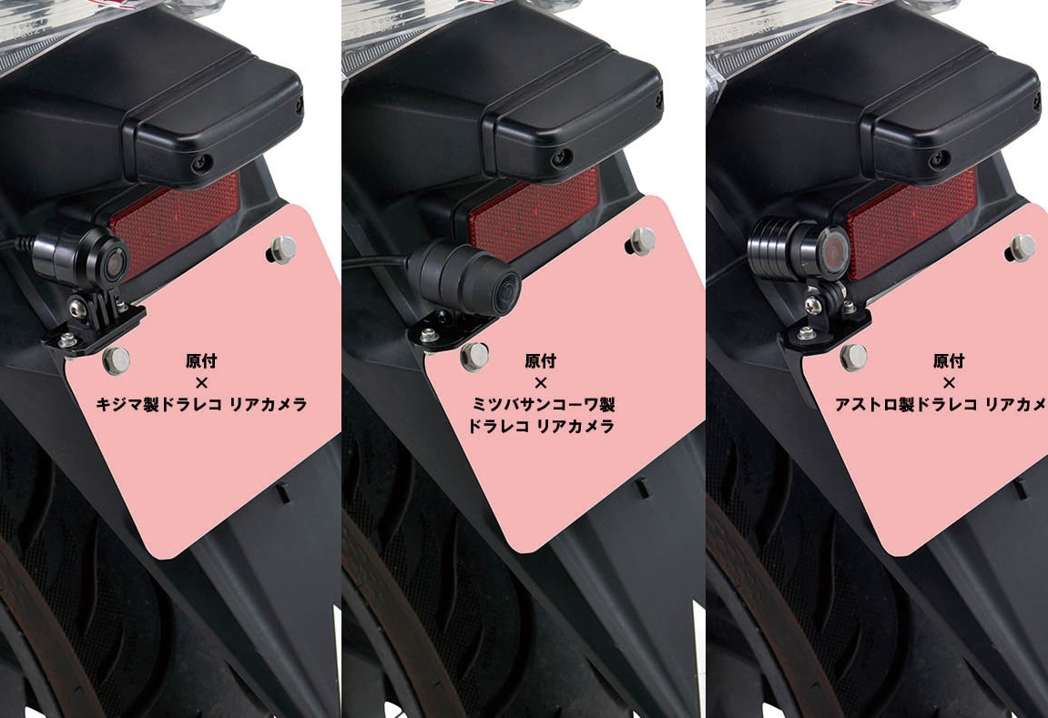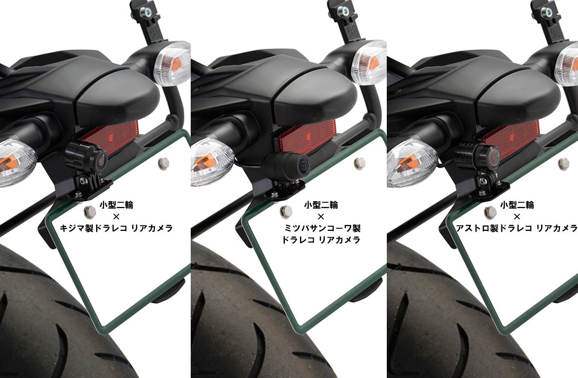 ステーをフェンダーとナンバープレートに挟み込むタイプです。取付確認ドラレコ:ミツバサンコーワ(EDR-11/21/21G)/キジマ(1080J/AD720)別売オプション:汎用L字ステー品番DRS-LS