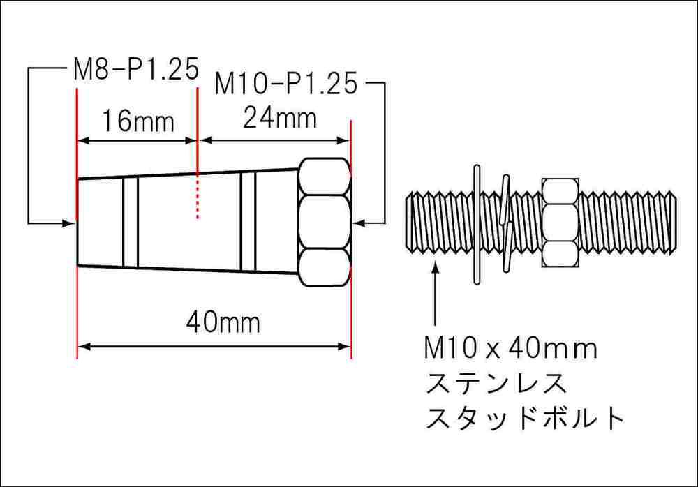 エクステンションステー40mm M8-M10 シルバー POSH(ポッシュ)