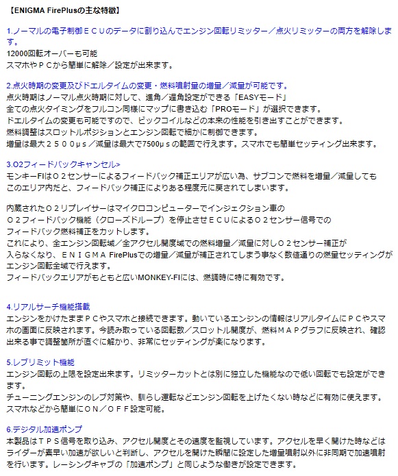 ENIGMA(エニグマ) FirePlus Bluetooth接続モデル DiLTS(ディルツ ジャパン) モンキー(MONKEY)FI車