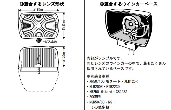 HONDA純正スクエア形状ウィンカー用(投影面積約59mm×39mm)