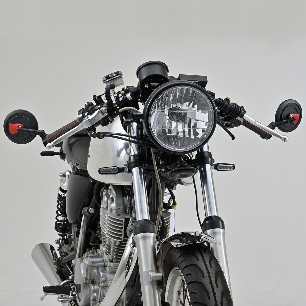 「宇宙」を感じるCNC加工で削り出されたアルミ製ミラーヘッドは、HIGHSIDERのデザイナーが感じたSF映画の世界観を表現。・左右共通。片側1本入り・アーム部:ブラックアルマイト・レッド/ハウジング部:CNC加工、ブラストブラックアルマイト+レッドアルマイト仕上げ※別途バーエンドミラーアダプターが1個必要です。※ハンドルを左右に切り車両やレバーに接触しないことを確認のうえ、ご使用ください。