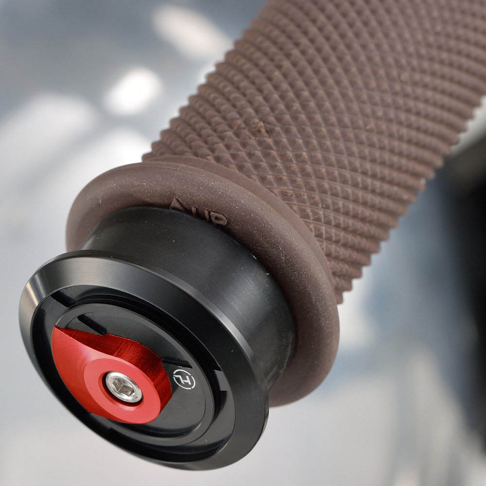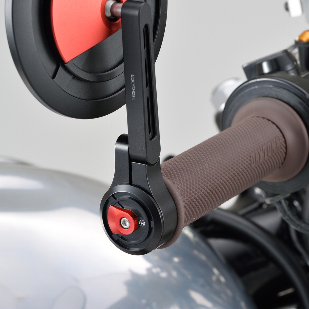 「宇宙」を感じるCNC加工で削り出されたアルミ製バーエンドミラーアダプターは、HIGHSIDERのデザイナーが感じたSF映画の世界観を表現。