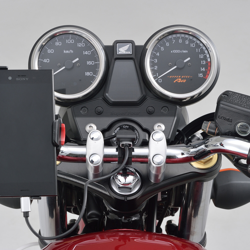 電源の取り出しは、ブレーキスイッチの平端子に割り込ませるだけなので取付簡単。電源供給はメインキーに連動してON/OFFされます。スマートフォンやタブレットの充電も余裕の出力で、1ポート5V2.4A出力を実現。ハンドルクランプと貼付式から取付方法を選べます。電源差し込み口を覆う防水樹脂キャップで急な雨でも安心。・配線長:+側約180mm、−側約800mm、USB側約500mm・1ポート出力2.4A・ACC接続端子:187型・3Aヒューズ付き・保護機能(USB出力過電流保護 出力ショート保護 入力逆接続防止 過温度保護)※12V専用。6V/24V車不可※ブレーキスイッチに平型端子を採用していない車両には取り付けできません。