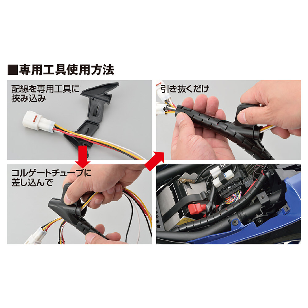 手間がかかるスリットチューブの取り付けが専用工具を使うことにより簡単施工可能。コルゲートチューブよりも柔軟性があり、配線への負担も少ないです。・材質:PE・使用温度範囲:-20℃〜100℃・全長3m