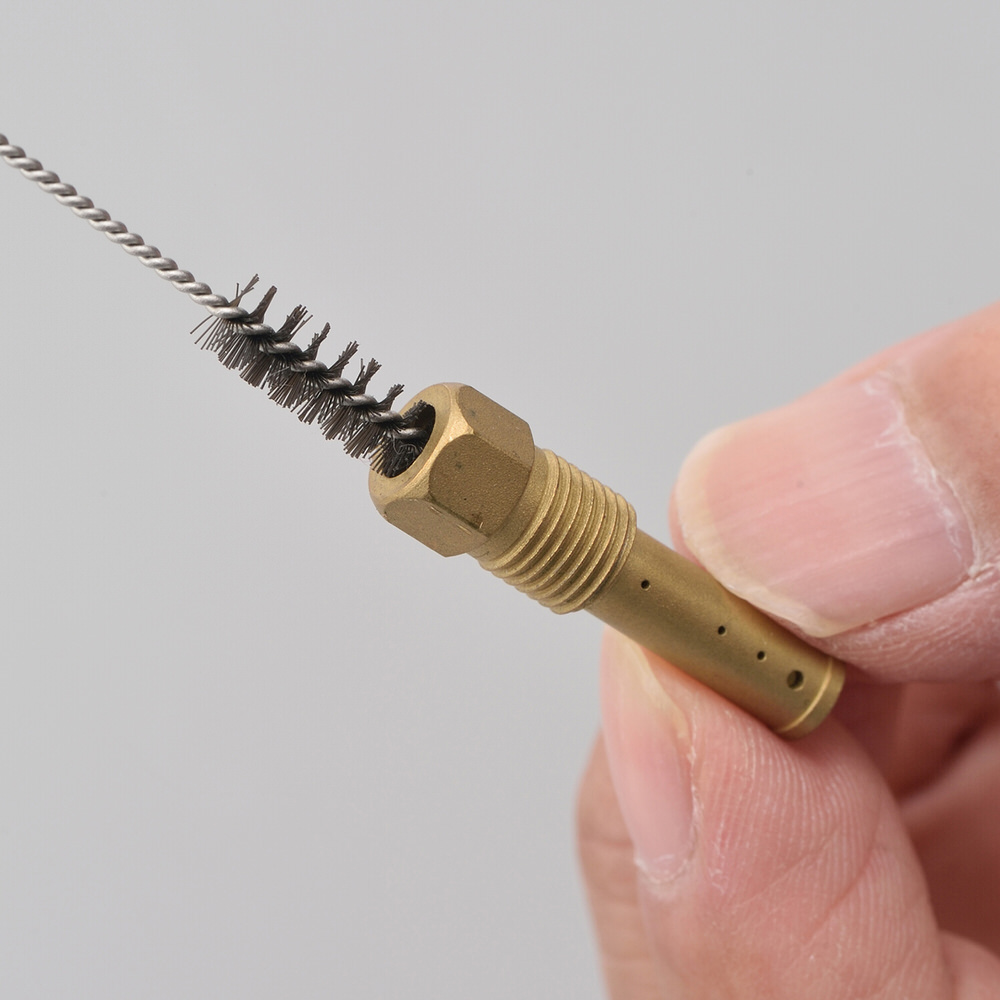 普通のブラシでは届かない、キャブレターの細い穴の内部やネジ山の中等を洗浄するのに最適です。