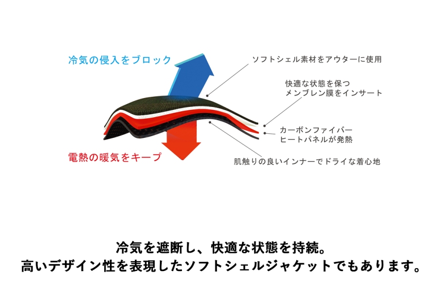 発熱性に優れ遠赤外線効果を高めつつ、薄く違和感の無いインナーとして機能します。冷気を遮断し、快適な状態を持続。高いデザイン性を表現したソフトシェルジャケットでもあります。脇部分にも伸縮素材を使用し、ライダーの動きを妨げることなく一体感を高めています。無駄なく発熱効果を体感できます。前身丈は短く、ライディングポジションでもたつきません。後身丈は少し長く、腰のずり上がりを防止。同社製のプレミアムヒートライディンググローブ(別売)と接続が可能。さらに発熱効果を高めます。付属品:バッテリーハーネス、ヒューズ、温度調節コントローラー12Vオートバイバッテリーを電源とする電熱ウエア。最大約50度を超える温熱性能を数十秒で体感可能。薄いヒートパネルは着心地が良く、ソフトシェル調のデザインと相まって冬のライディングを快適にしてくれるインナーとして機能します。表地:ポリエステル94%、ポリウレタン6%裏地:ポリエステルモデル:J50112Vオートバイバッテリー専用(7Ah未満使用不可)ご使用前に必ず取り扱い説明書をお読みください。製品特性上、バッテリー上がりを引き起こし易くなりますので定期的にバッテリーメンテナンスを実施ください。