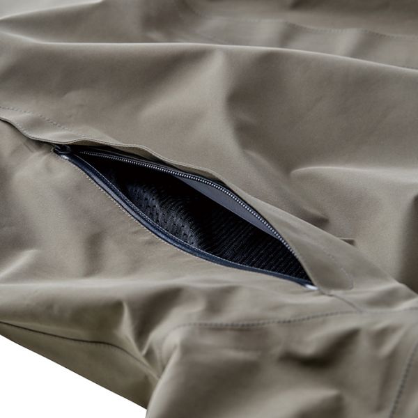 普段着のような外観の中にはプロテクター内蔵式のインナージャケットを装備。このインナージャケットは着脱を可能にしており、外すとプロテクターのないレインジャケットとしてもご利用いただけます。・着脱式フード材質 表地:ナイロン 100%/裏地:ポリエステル 100%