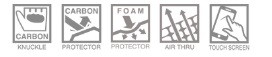 オリジナルカーボンプロテクターを採用。通気性と伸縮性に優れるナイロンメッシュにより、スムーズな操作と快適性を兼ね備えるエアスルーメッシュグローブ・ストレッチパネル(指)材質:ポリカーボネート 27%:合成皮革 21%:本革 20%:ナイロン 19%:カーボン 9%:ポリウレタン 2%:ポリエステル 1%:ゴム 1%