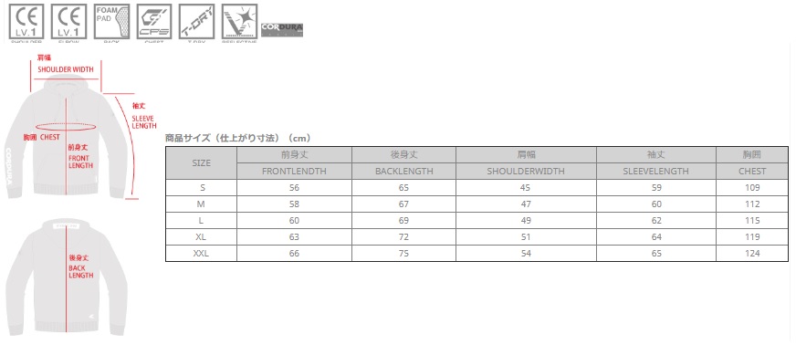 CORDURA 混紡ニットを使用した高強度スウェット生地のため、ストリート向けのデザインでありながら安全性も確保しています。フードのコードはジャケット内側のホックで固定し、走行時のバタつきにも対応しております。材質 表地:ポリエステル 66%:ナイロン 34%/裏地:ポリエステル 100%