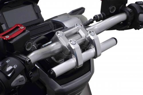 本製品はハンドルガードにΦ22.2パイプを採用している為、ハンドルクランプタイプのモバイルホルダー等が装着出来、スマートフォンやナビゲーションの固定が可能になります。又、カラビナ等を使用することで、小物を引っ掛けることも可能です。ブラケットは、アルミ材を精巧に削り出し、表面にアルマイトを施しています。Φ22.2アルミ製パイプのハンドルガードは、表面にショットブラスト後、アルマイトを施しています。アルミ削り出しのブラケットとアルミパイプにより、ドレスアップ効果を高め、ハンドル周りを美しく演出します。ブラケット、アルミパイプ共にSP武川社ロゴのレーザーマーキング入り。
