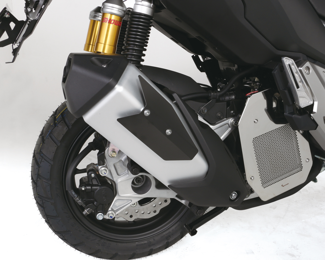 ノーマルヒートガードと交換するドレスアップパーツ。サイレンサー形状に合わせたスタイル。ボルトオンアルミ製アルマイト仕上げノーマルボルト再使用