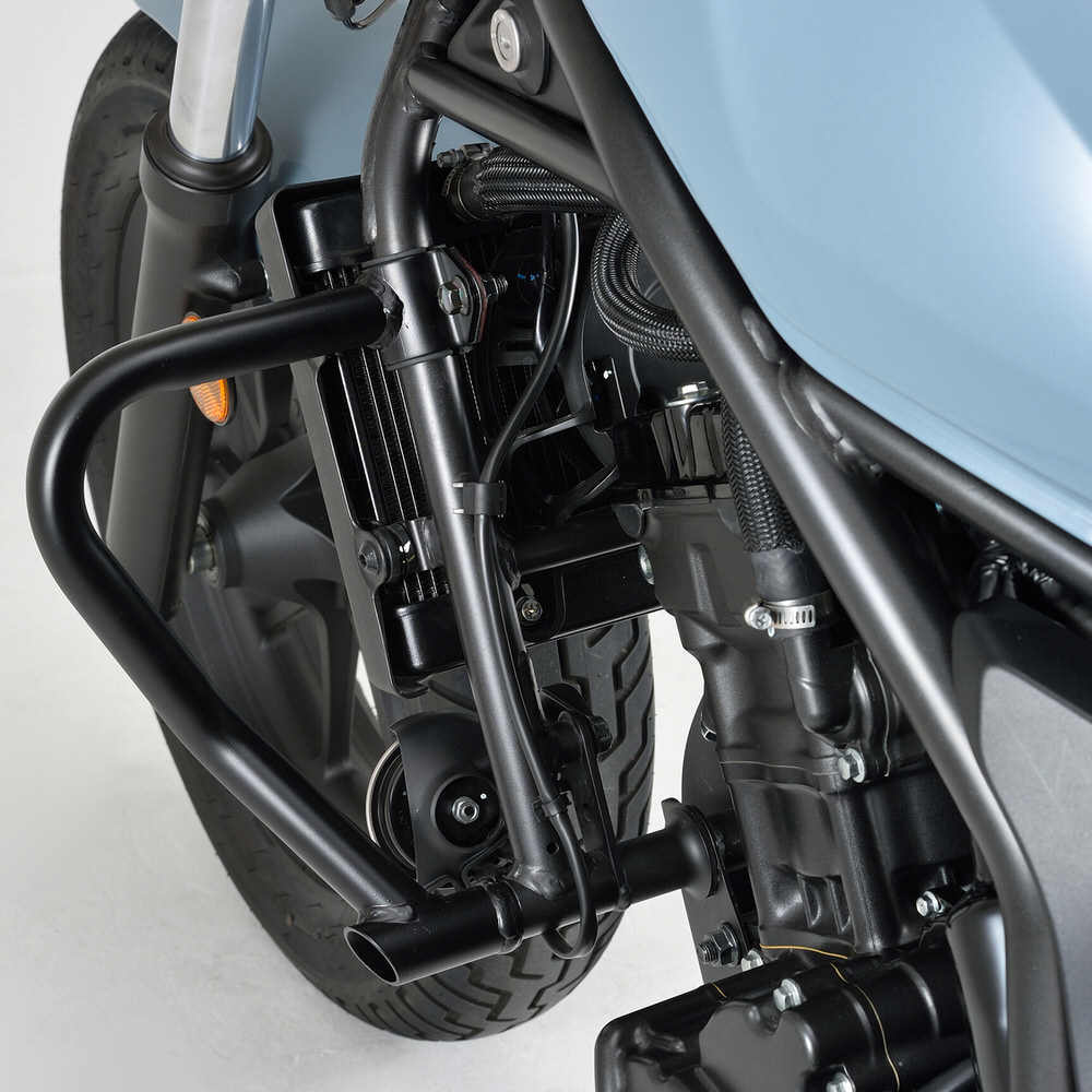ボルトオン装着可能なφ25.4スチールパイプ製の強固なエンジンガード。立ちゴケ等の軽度な転倒に対し、エンジンやカウルのダメージを軽減します。φ25.4(1インチ)のパイプはアメリカンのハンドルと同径なので、アクションカメラなどハンドルにクランプする用品の装着も可能。ゴムダンパー装備で、フレームに傷を与えない親切設計。装着時最大幅:592mmREBEL250(17〜19)MC49/500REBEL500(17〜19)PC60共通左右分割タイプ(対称形状)スチール製マットブラック塗装仕上げ※過度な転倒時には商品が破損する恐れがあります。※本商品は飛び石やバイク保管用保護カバーとのすれ等で塗装がはがれる場合があります。※樹脂パッド(リダクションスライダー)は付属しません。※デイトナ品番:99258(Upper)と95226およびデイトナ品番:96505(Lower)の同時装着不可。