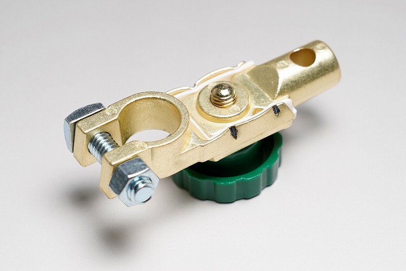 緑色のノブを回しバッテリーON/OFFの切り替えが簡単に行えます。