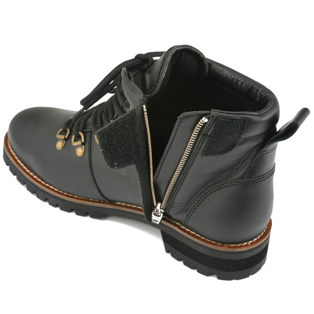 マウンテンブーツをモチーフとしたバイク用ブーツ。普段履きでも使えるアウトドアに適したデザインでバイク乗車を考えた機能を確保。脱着しやすいサイドファスナー式。シフトパッド、くるぶしパッド内蔵。ソールのステップ部に滑り止め加工。内側の金具はハトメに変更し愛車を傷から守ります。3E相当幅広設計。※防水機能はありません。