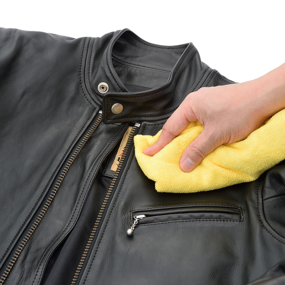 革製品を洗濯機で丸洗い。革を作っている成分(タンパク質、細胞間脂質、結合水など)はアルカリや水に弱いため、普通の洗剤で洗うと、汚れと一緒に成分が溶け出して、硬化、収縮、色落ちなどが起こります。「レザーウォッシュ」は水のpHバランスを調整し、水に流出する成分を新たに補給しながら洗うので汚れを落としつつも革本来の特性を蘇らせることができる、自宅で洗える皮革用洗剤です。洗えるライディングレザー製品天然皮革(牛・豚・鹿・羊・山羊・カンガルー・ダチョウ等)、衣類全般。皮革と生地のコンビ衣類も大丈夫。シワ加工の皮革製品やヌバック・スウェード・バックスキンの起毛皮革も洗えます。洗いに適さない物劣化やダメージを負った革製品は使用不可ヌメ革や爬虫類革、毛皮、純白色の製品は使用不可赤や青、淡く薄い色系や起毛素材は色落ちしする場合があります