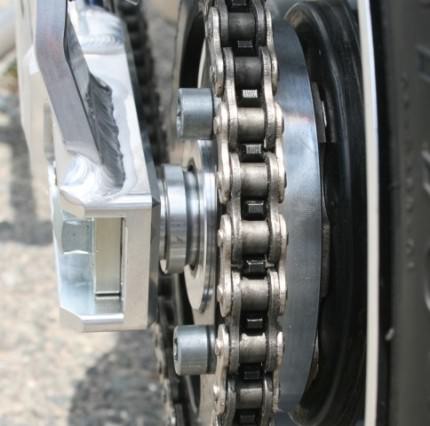 ダックス/シャリィ用スーパーワイドスイングアームとGクラフト社10インチ5.5Jワイドホイールを装着した場合に、チェーンラインを出すために必要な部品になります。鉄とアルミのハイブリット構造を採用し、部品強度を確保しています。使用するリアスプロケットは、NSR50/80もしくはNSF100用のスプロケットになります(※31丁以下は装着不可)フロントは20mmオフセットスプロケット(36028)の併用をお勧めします。3本、4本ハブどちらも使用可能(チューブレスタイプのハブは使用不可)※リアショックのエンドアイが純正より厚い物は、チェーンとサス受けボルトが干渉する場合がございます。本製品は、カブ系純正 50ccエンジンを前提に設計・製作しております。誤った取付をすると破損の原因になりますので、ご注意ください。【材質】 A2017材 クロモリ鋼【表面処理】 シルバーアルマイト仕上げ
