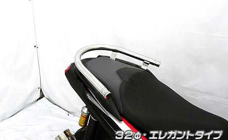 車体に沿うように低くデザインされているのでボディラインにフィットし、かつ極太の32mm径のステンレスパイプを採用しましたので、存在感、目立ち度は抜群です!仕上げはバフ掛けを施していますので、高級感タップリでドレスアップには最適の逸品です!