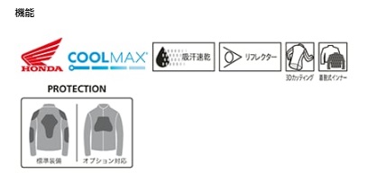 艶やかな素材でインナー付きのモーターサイクルジャケット肉厚素材ながら運動性に富んだ、スポーティな2WAYジャケット。街中に溶け込みながらも個性を主張できるデザイン。通気性のよいメッシュ素材をベースに、要所にナイロン素材を施すことで、バタ付きを防止。素材表地:ポリエステル100% 部分素材:ナイロン100%裏地:ポリエステル100%インナー:ナイロン100%(PUコーティング)プロテクター標準装備:メッシュプロテクター(ショルダー用/エルボー用/バック(脊椎)用)オプション対応:テクセルチェストプロテクター(一体型タイプ/セパレートタイプ)