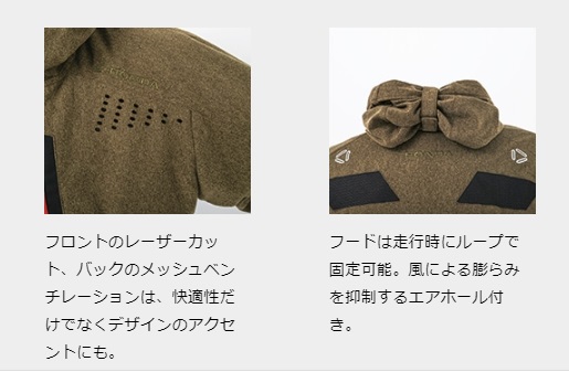 街乗りからツーリングまで、伸縮性に優れるライディングフーディ細身のシルエットと伸びのよい生地感が魅力、街中コーデに積極的に使いたい杢調のカジュアルなフーディ。3つのファスナーつきポケットで収納性を確保。素材表地:ポリエステル100%背中メッシュ部:ナイロン100%裏地:ポリエステル100%プロテクター標準装備:メッシュプロテクター(ショルダー用/エルボー用/バック(脊椎)用)オプション対応:テクセルチェストプロテクター(一体型タイプ/セパレートタイプ)