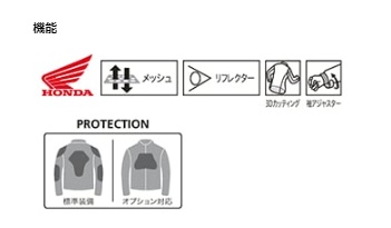 真夏に最適なフード付きメッシュジャケット袖、袖口、フードのアジャスターでバタつきを抑制。フードには耐久撥水生地を使用。素材表地:身頃 ポリエステル100% フード ナイロン100%裏地:ポリエステル100%プロテクター標準装備:メッシュプロテクター(バック(脊椎)用/ショルダー用/エルボー用)オプション対応:テクセルチェストプロテクター(一体型タイプ/セパレートタイプ)