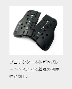 高い剛性と衝撃吸収性を兼ね備え着脱の利便性を高めたセパレートタイプチェストプロテクターMCウエアブランド「アールエスタイチ」とのコラボレーションモデル。熱可塑性樹脂の単一素材成型により軽量ながら衝撃吸収性と剛性を実現。3次元アーチ状のトンネル構造により、面剛性を最大化。ボディプロテクター対応のジャケットに取り付けが可能。prEN1621-3 level2(セパレートチェストDCタイプ認可)素材プロテクター本体:シェル/ポリプロピレンサイズW270mm × H220mm総重量:約250g※旧ボディープロテクターとボタン幅サイズは共通です。