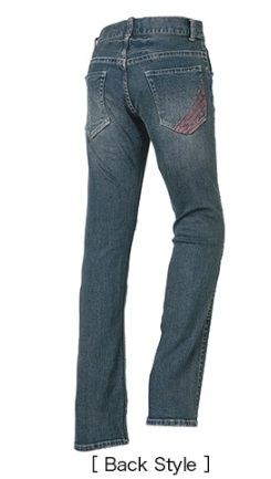 操作性にこだわりながらもストレッチデニムでスタイルアップストレッチデニム素材を使用、細身ストレートシルエットのデニムパンツ。フロントに3箇所/バックに2箇所の5ポケットのオーセンティックなパターン。フロントはピスネーム。バックポケットはハネをモチーフにした刺繍。素材表地:コットン98%/ポリウレタン2%(ストレッチデニム)プロテクター標準装備:EVAソフトプロテクター(ニー用)