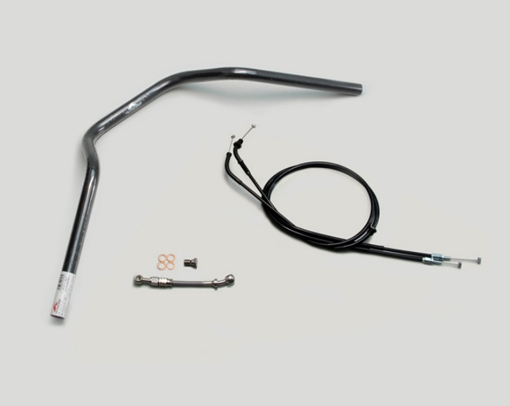 ハンドルと必要なケーブル&ホースSET付属 スロットルケーブル・ブレーキホースハンドルの穴開け加工が必要、サイドキャップ(内径φ18mm)が必要