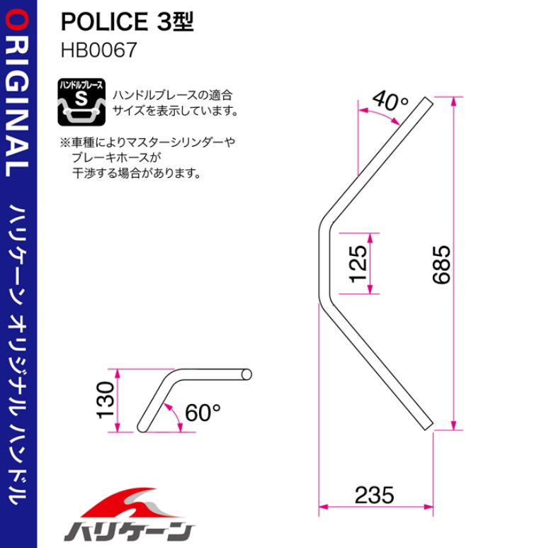 POLICE 3型 ハンドルセット ブラック HURRICANE(ハリケーン) CB1300SB(14〜19年 ABS車)