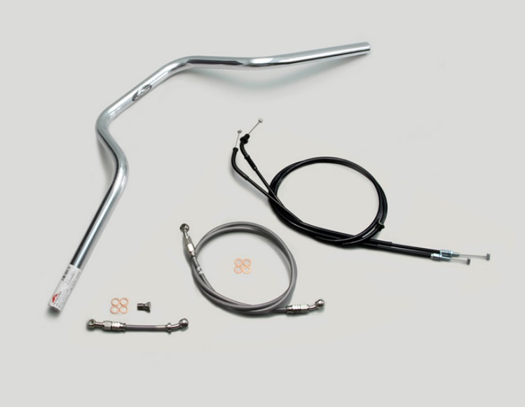 ハンドルと必要なケーブル&ホースSET付属 スロットルケーブル・クラッチホース・ブレーキホース別途 ハーネスの延長、ハンドルの穴開け加工が必要、サイドキャップ(内径φ18mm)が必要