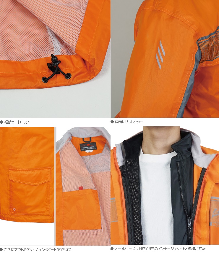 ※商品詳細画像には同型別カラーのものが含まれております。ご注意くださいませ。耐久性を重視した生地選び、視認性に優れたリフレクターの配置、ライディングポジションを考慮した3Dカッティング、パンツのずり上がり防止機能、走行時のバタつきをを抑えるアジャストなど「バイク乗りのための機能」を凝縮した、これぞ「ザ・バイク専用レインスーツ」です。また、上着はオールシーズン対応なのでオプションの豊富なインナーを装着することで優れた防水・防風・防寒ジャケットとして天候とらわれることなく活躍します。ジャケット:表地/ナイロン70DPVCコーティング 裏地/スーパーエアメッシュ えり裏/起毛トリコットパンツ:表地/ナイロン70DPVCコーティング 裏地/スーパーエアメッシュ収納袋付