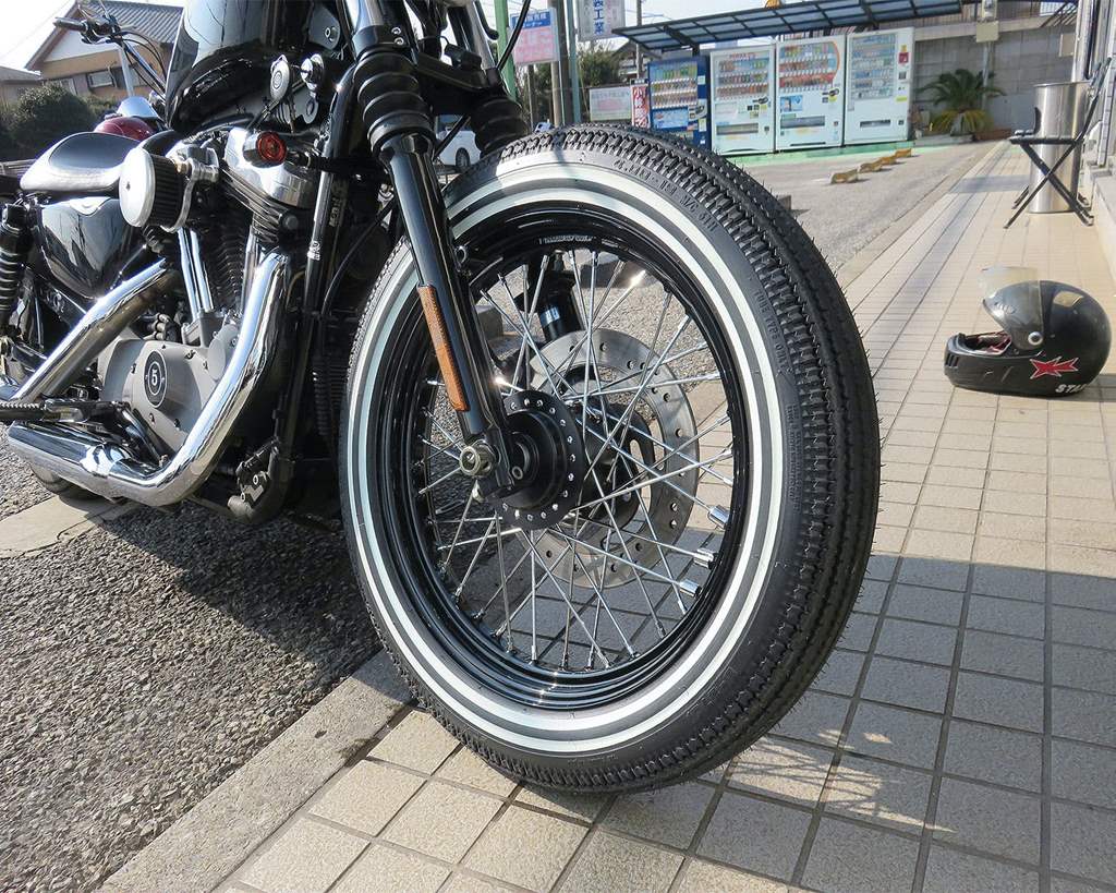 適合車種:19インチホイール装着車サイズ:4.00-19内容品:タイヤ本体×1本50年代の純正GOODYEARタイヤパターンのレプリカタイプタイヤです。ハイト(タイヤの高さ)が高いクラシカルなタイヤです。サイドのホワイトウォールによりクラシカルな雰囲気がただようタイヤです。PANHEADのレストア用としてはもちろんカスタム車輌にもよく似合います。注意事項:チューブ専用タイヤとなります。チューブレスホイールにはチューブを入れてご使用下さい。現在ご使用のタイヤサイズを必ずご確認下さい。※出荷時にホワイトウォール部分には日焼け防止の青いコーティングがありますので、ご使用前に中性洗剤とたわしなどで剥がしてご使用ください。