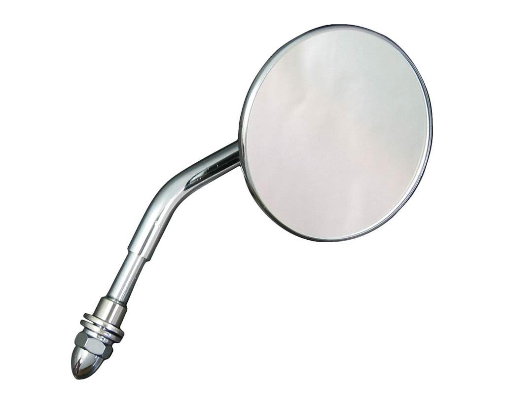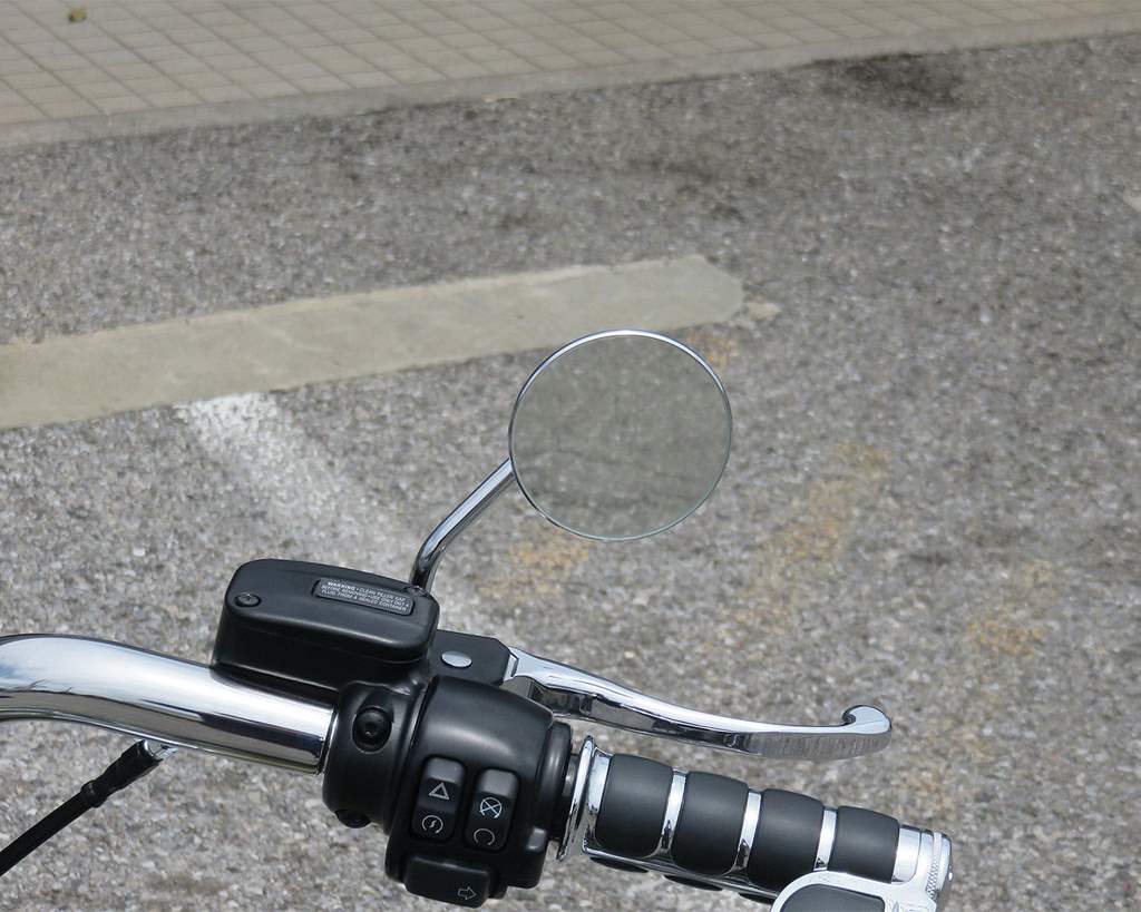 色:クロームサイズ:ミラー直径 3インチ(約76mm)ステー 全長約142mm(取り付け部除く)移動可能幅約85mm素材:ミラー部:ガラスボディ:スチール内容物:ミラー本体×1個注意事項:左右兼用です。ミラークランプと併用する場合は必要に応じてロックワッシャー等を入れてご使用ください。商品説明:3in(小さいほう)のラウンドミラーです。純正は大きくてかっこ悪い、ハンドル周りをすっきりさせたい。そんな人にお勧めです。EVO以降の純正ハンドルマウントのウインカーも使用可能です。ミラーとステムは芋ネジで固定するタイプですので、位置の調整が可能です。又、ネオファクトリー製のミラークランプを使用すれば移設取付も可能です。