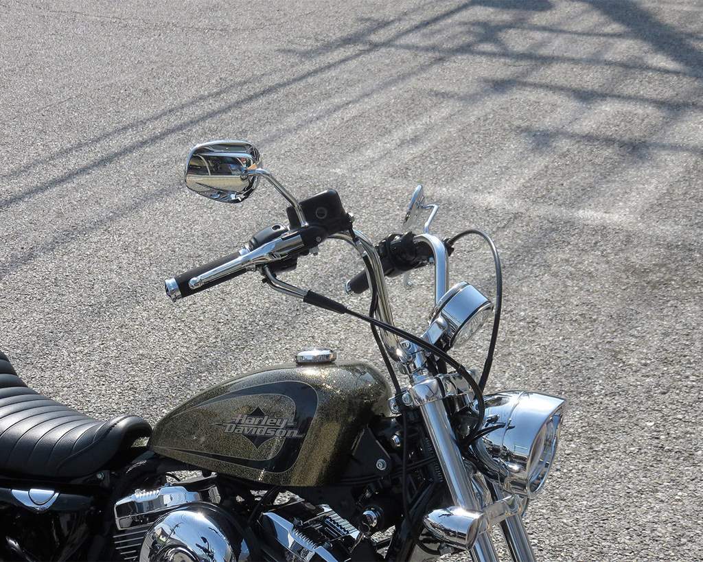 色:クロームサイズ:全幅約690mm 高さ約220mm プルバック約250mmエンドライズ約135mm 取り付け幅約120mm適合車種:1インチバー採用のほとんどのハーレー素材:スチール内容物:ハンドルバー×1本注意事項:1枚目画像はヘコミ有りです。2枚目画像は配線中通し加工済みのイメージです。商品説明:82年式純正スタイルのハンドルバーです。ちなみにヘコミとは配線の逃げのことです。〜82年式まではヘコミ無し、それ以降はヘコミ有りを使ってください。
