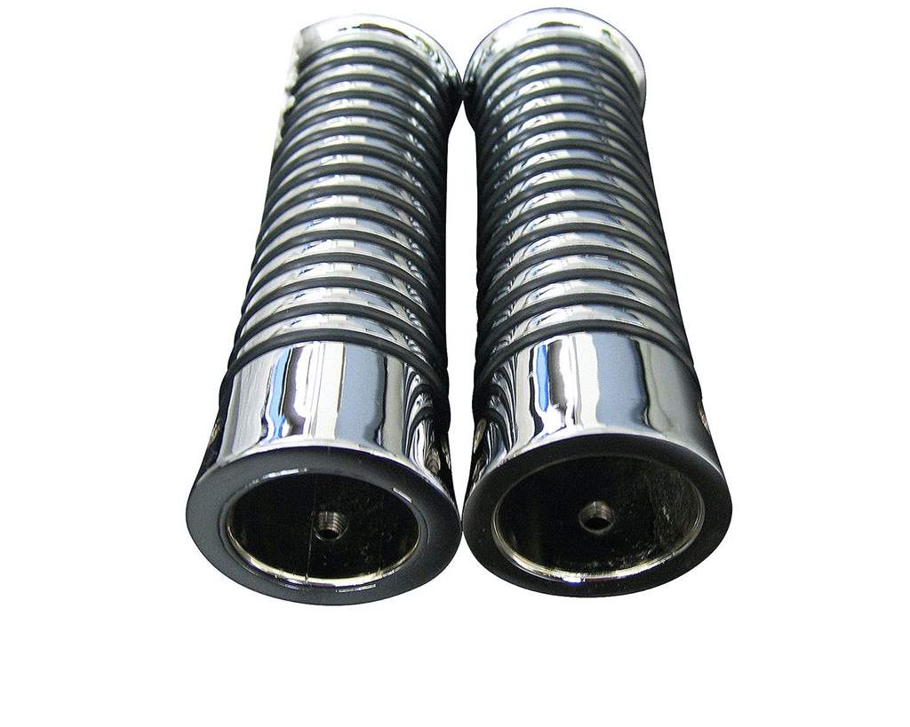 色:クロームサイズ:1インチバー用適合車種:1インチバーを使用する殆どのハーレー素材:アルミ内容物:グリップ本体×2本(左右1セット) グリップ固定用芋ネジ×6個 六角レンチ×1本注意事項:インナーは別売りです。 構造上インナースロットルを加工する必要があります。 (下記にて詳細を記載しておりますのでご確認下さい。)商品説明:O-RINGタイプスタイルカスタムグリップです。同じO-RINGタイプのフットペグやシフトペグもあるのでデザインを揃えるとおしゃれです。取り付け方は左(クラッチ側)はハンドルにかぶせるだけ。右(ブレーキ側)は純正のインナーにかぶせるだけです。グリップ交換時、純正のインナーが外れない!!という人は、下記記載のネオファクトリー社インナースロットルを使ってください。構造上インナーを加工する必要があります。加工といっても筒部分の出っ張りを全て削り取るだけです。カッター等で簡単に出来ます。(4箇所)