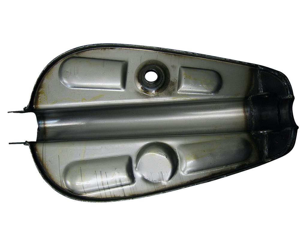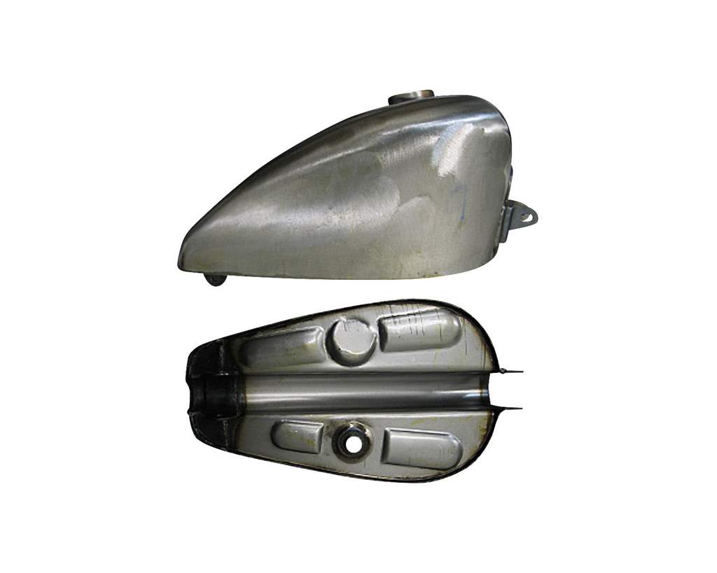 色:素地(未塗装)サイズ:長さ約400mm(ブラケット含まず) 幅約230mm 高さ約180mmトンネル(下のえぐれてる所)幅約50mm 深さ最大約100mm、最小約20mmガスコックサイズは13/16ナットコネクション適合車種:82〜95年式のスポーツスター(ただし、年式によっては加工が必要)素材:スチール内容物:ガスタンク本体のみ注意事項:ガスキャップはカムタイプのみ適合です。塗装の前にフィッティング、ガス漏れの確認を行ってください。内容量表記(ガロン)は目安となっております。車体にマウント後、実際に使える容量は表記より低くなる場合がございます。※当商品を購入及び施工前に『ガソリンタンク取り扱い注意事項』を必ず御確認下さい。注意事項を確認せず塗装や加工等を行った後に発覚した製品の不具合は一切お受け付けを致しませんので予めご了承下さい。商品説明:82年のスポーツスターのレプリカタンクです。チョッパーの定番ですね。02年までのスポーツスターとはマウント位置が近いので、割と簡単に取り付け可能です。ただし、ブラケット等の加工工夫が必要です。