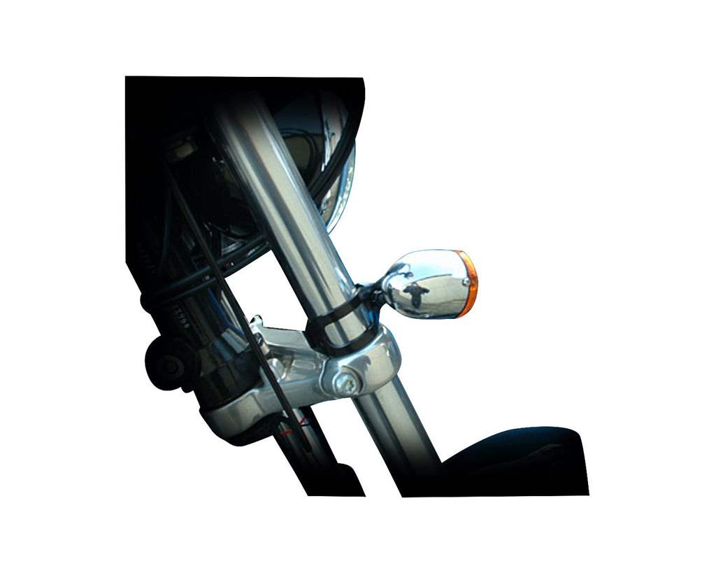 色:クロームサイズ:35mm〜41mmフォーク用取り付け穴径:約10.5mm素材:スチール内容物:ブラケット×1個注意事項:ラバーが付属している場合がございますが、基本的に付属しておりません。41mmフォークに取り付ける際には若干加工が必要です。41mmフォーク以外(35mmや38mmフォーク)にネオファクトリー社ストレッチバレットウインカーを取り付ける際にはウインカー側にスペーサーを入れる必要が有ります。商品説明:画像は取り付けイメージです。 ウインカーのブラケットです。アイディア次第ではウインカーだけでは無く色々取り付けできますね。