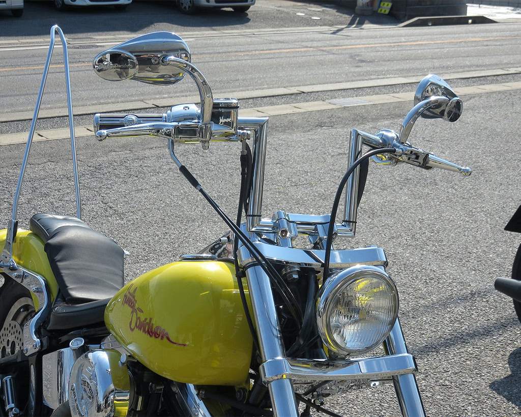色:クロームサイズ:全幅約730mm 高さ約180mm プルバック約120mmエンドライズ約155mm 取り付け可能幅約170mm 適合車種:1インチバー採用のほとんどのハーレー素材:スチール内容物:ハンドルバー×1本注意事項:電子制御スロットル採用モデルに使用する際は加工が必要になります。この商品にはヘコミがあります。商品説明:ロボットハンドルバーとも言いますね。Kカスタムの定番です。8inの高さになります。結構高めです。ちなみにヘコミとは配線の逃げのことです。〜82年式まではヘコミ無し、それ以降はヘコミ有りを使ってください。