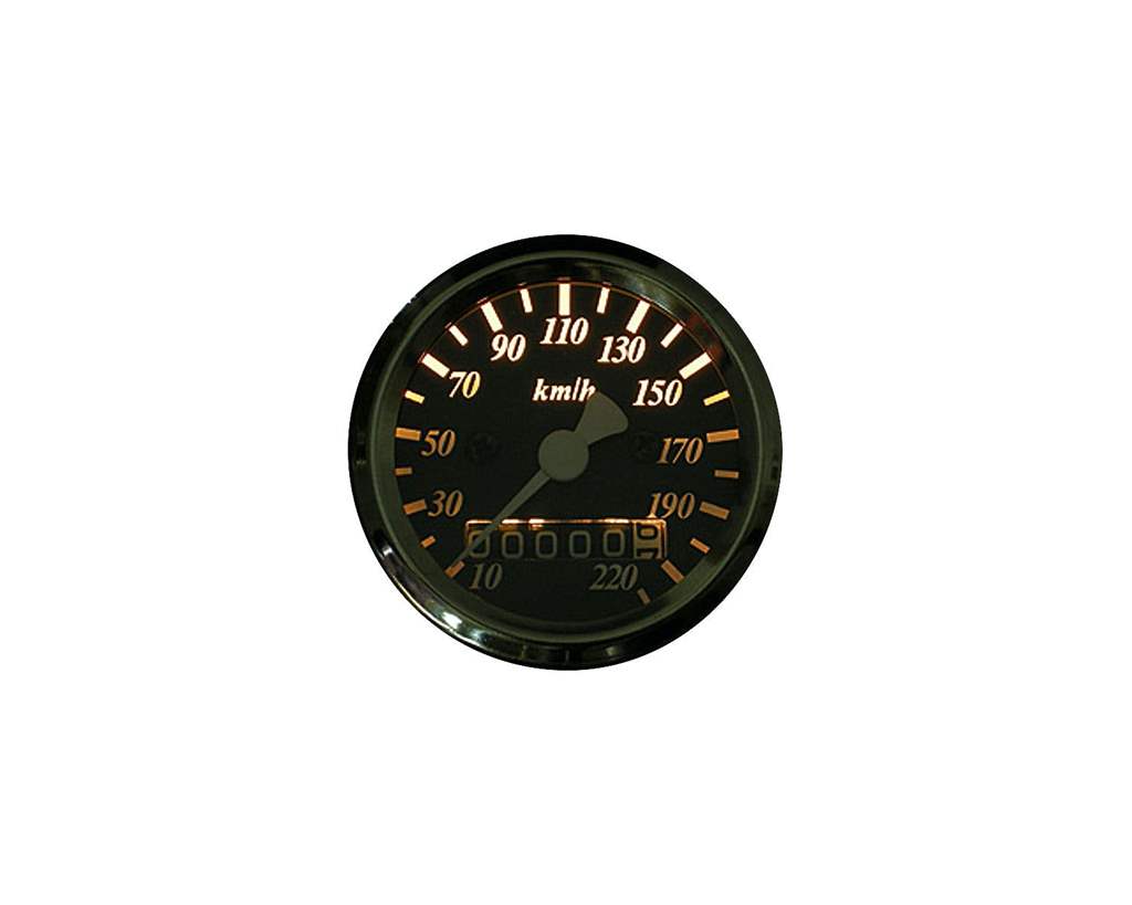 色:ボディ:クローム 文字盤:黒 針:白サイズ:直径:48mm(トリム部53mm) 奥行き:52mm(ケーブル接続部含まず)ケーブル接続部ネジ径:12mm取り付け穴径:約10mm オフセット:約50mm(本体中心〜取付穴中心)適合車種:メータードライブユニットのギアレシオが2:1の車輌36〜67年式のトランスミッションドライブタイプ73〜95年式までのFXモデル・81〜84年式までのFLモデルのフロントホイールドライブタイプ73〜94年式XLモデル※上記の適合は目安です。ドライブユニットが変更されている場合がありますので、必ず車両のギアレシオをご確認ください。素材:ボディ:ステンレス ステー:スチール内容物:メーター本体x1 ブラケットx1注意事項:必ず取り付け車輌のレシオをご確認下さい。間違ったレシオを取り付けた場合速度に差異が発生いたします。91〜95年式までのFL、ソフテイルには適合しません。メーターケーブルを使います。接続部のナット径をご確認ください。91年式以降のモデルはウインカーセルフキャンセルが使用できなくなります。ネオファクトリー社では車両ごとのギヤレシオのご案内は行っておりません。商品説明:小さなタイプのメーターです。発光時には幻想的な白い光で、見た目もばっちり。タンクを替えたらメーター移設が必要になった!とか、メーターが大きすぎてカッコ悪い!という人にぴったりです。