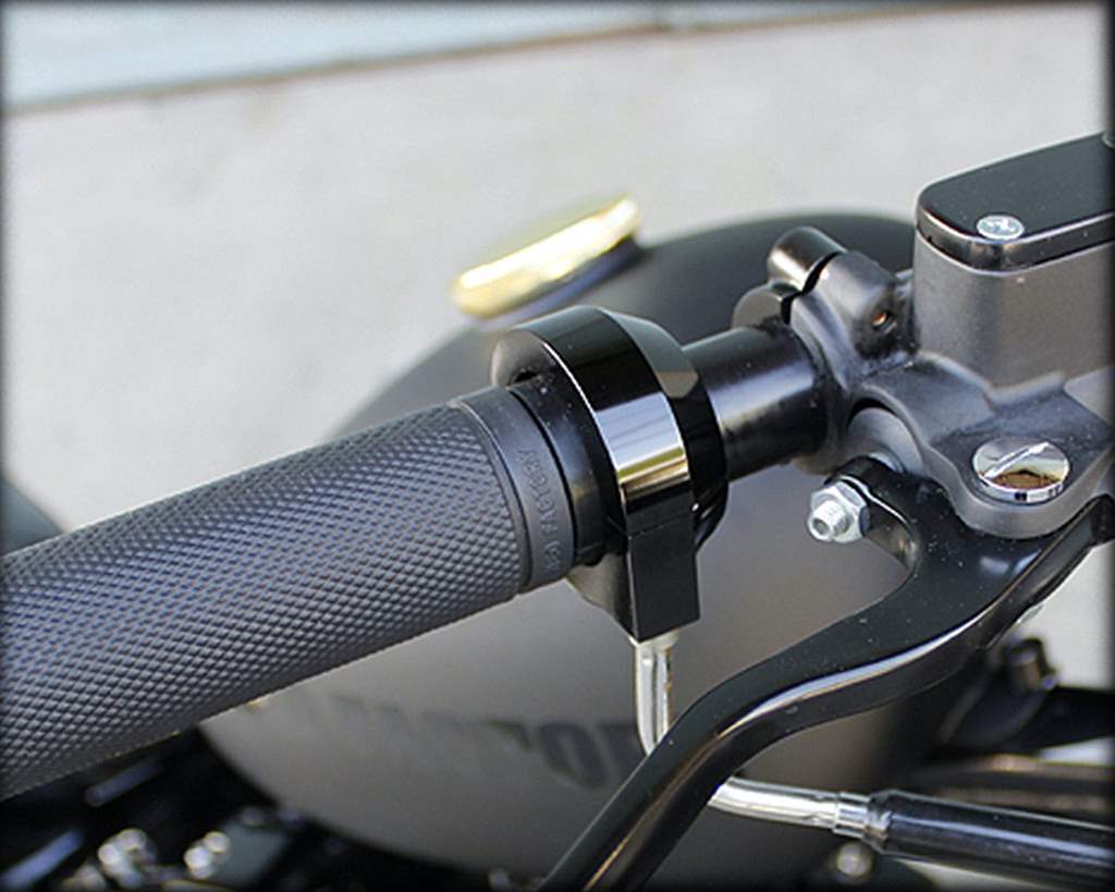色:ブラック適合車種:シングルケーブル用ケイヒンバタフライキャブ用素材:アルミ内容物:本体×1 取り付けボルト×2(対応工具サイズ:六角9/64)※取り付けボルトサイズは予告無く変更する場合がございます。注意事項:プッシュインタイプのケーブルや、'81以降用のケーブルには適合いたしません。商品説明:グリップ周りをシャープに引き締めます。ビレット系のグリップと合わせてもカッコイイですね!こちらはシングルケーブル対応です。ネオファクトリー製スイッチケースと合わせて使用すると、ハンドル周りがスッキリします。