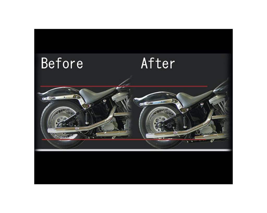 色:ユニクローム適合車種:00年〜17年式のソフテイルモデル※ミルウォーキーエイトモデルにはお使い頂けません。素材:スチール内容物:ロワリングキット×1台分注意事項:取り付けには専門的知識及び技術が必要です。2枚目の写真は取り付けたイメージです。※ソフテイル純正ショックに対し全般に対応しますが、FLSTSB・FLSTFB・FLSTN・FXSTD・FXCW・FXCWC・FXS・FLSなど一部モデルは施工の際にショックのクリアランスがタイトだったり、フェンダー等のクリアランスを注意しながら作業する必要があります。商品説明:00年式以降のソフテイルをローダウンできます。様々なカスタムスタイルがありますが、リアのローダウンは必須ですね!調整式で最大約2インチのローダウンが可能です。お好みの高さに調整してください。取り付け難易度は高めです。不安なひとはショップへ任せましょう。