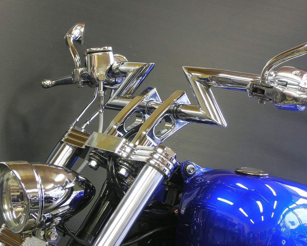 色:クロームサイズ:高さ約102mm(底部からハンドル中心までです。)プルバック約25mm(ネジ穴中心からハンドル中心まで)適合車種:1インチハンドル用です。素材:アルミ内容物:ライザー×2本(左右1セット)注意事項:ライザーボルトは純正をご使用いただくか、ネオファクトリー製ネオファクトリー社ライザーボルトをご使用ください。スプリンガー・デュース・V−RODには適合しません。(デュースは専用ソリッドマウントを使用することで対応可能)また、ファットバー仕様車・トップクランプとライザーが一体式の車両も適合不可です。(07年式以降のFLSTF、XL1200X等)トップクランプボルトの締め付けは均一に行ってください。オーバートルクはライザー本体を破損する恐れがあります。商品説明:4inのスロッテッドライザーです。ハイテックタイプにかなりはまりますね。下記記載のボルトキャップをつけるとおしゃれですよ。ライザーボルトは純正または、下記に記載のライザーボルトをご使用下さい。