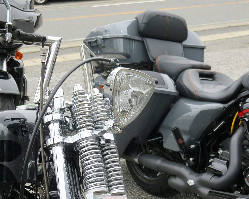 色:クロームサイズ:レンズ部 横約135mm×縦約135mm奥行き(レンズ含む)約90mm素材:ボディ:スチールレンズ:ガラス内容物:ライト本体(H3バルブ 12V55Wノーマルバルブ付き)×1個 汎用ヘッドライトブロック×1個注意事項:こちらのライトはH4バルブではありません。シングル球です。付属のヘッドライトマウントブロックは、他のヘッドライトと異なり汎用のマウントブロックが付属されております。取付けにはマウント部分の加工が前提となります。※取付参考画像はブラック塗装を施してあります。※レンズはオプションのイエローレンズを使用しています。商品説明:三角形(トライアングル)のライトです。薄型で見た目も非常にスッキリ!!オールドスクール系のカスタムに良く合いますね。バルブタイプなので球が切れても出費がかさみません。バルブはH3です。汎用なので何にでも使えますが、取付けには加工が必要です。ハイビーム、ロービームの切り替えが無い一灯式なので、フォグランプなどでご使用下さい。
