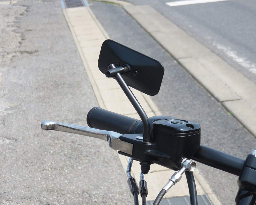 色:ブラックサイズ:ミラーサイズ 縦:約56mm 横:約114mmステー 全長約135mm(取り付け部除く)移動可能幅約85mm素材:ミラー部:ガラスボディ:スチール内容物:ミラー本体×1個注意事項:左右兼用です。ミラークランプと併用する場合は必要に応じてロックワッシャー等を入れてご使用ください。商品説明:ラウンドミラーと並んで定番人気のミラーです。カスタムスタイル問わず、しっくり決まるミラーです!EVO以降の純正ハンドルマウントのウインカーも使用可能です。又、ネオファクトリー製のミラークランプを使用すれば移設取付も可能です。