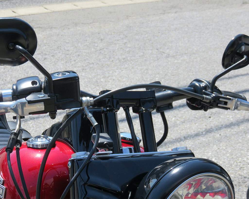 色:ブラックサイズ:高さ:約110mm(底部からハンドル中心までです。)適合ライザーボルトサイズ:1/2-13直径:約29mm適合車種:1in径ハンドルバー仕様車スプリンガー・デュース・V−RODには適合しません。(デュースは専用ソリッドマウントを使用することで対応可能)また、ファットバー仕様車・ハンドルクランプとトップブリッジが一体式の車両も適合不可です。(07年式以降のFLSTF、XL1200X、FXS等)OEM品番:56063-82A素材:アルミ内容物:ライザー×2本(左右1セット)注意事項:この商品はトップクランプが必要になります。一部高年式車両でメーターとトップクランプが一体式のモデルに取り付ける場合、クランプ裏側の突起がライザーに干渉する可能性がありますので、その際は削る等の小加工が必要になります。トップクランプボルトのネジ穴は貫通しておりません。純正ボルトを流用する場合はカットする必要があります。トップクランプのボルト位置が左右で平行になっているタイプは対応しません。トップクランプボルトの締め付けは均一に行ってください。オーバートルクはライザー本体を破損する恐れがあります。商品説明:4-1/2inのストレートライザーです。本来は80-86yのFXWGに使われています。プルバックだとハンドルがタンクに当たるという場合にオススメです。特にドラッグバーに換える場合はこの位の高さは必要です。ハンドルがタンクにヒットしないようにご確認下さい。。