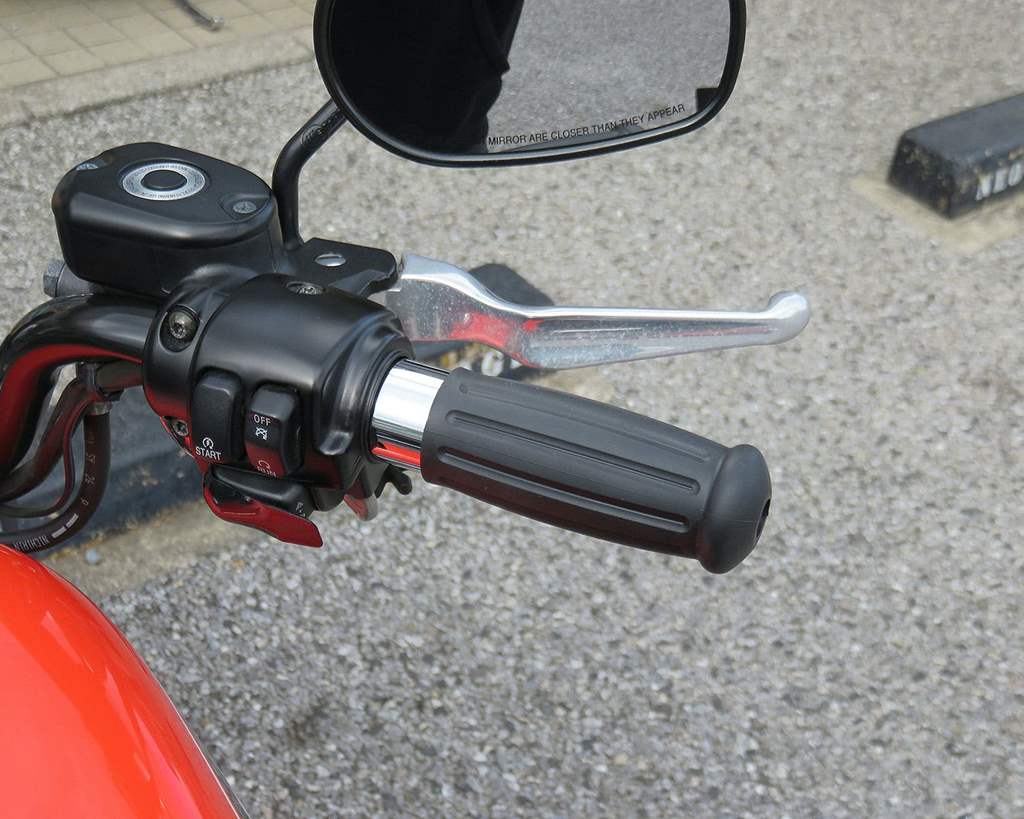 色:ブラックサイズ:1インチバー用全長:約135mm(ホルダー部含む)直径:約40mm(握り中央部分)適合車種:1インチバーを使用する殆どのハーレー(電子制御スロットルを除く)OEM品番:56275-96B素材:ラバー内容物:グリップ本体×2本(左右1セット)商品説明:ヴィンテージスタイルのグリップです。たる型デザインに加え、クローム部分がデザインのアクセントとなっており、チョッパーから現行ノーマルまで良く似合います。インナースロットルも付属されているお得なセットです。