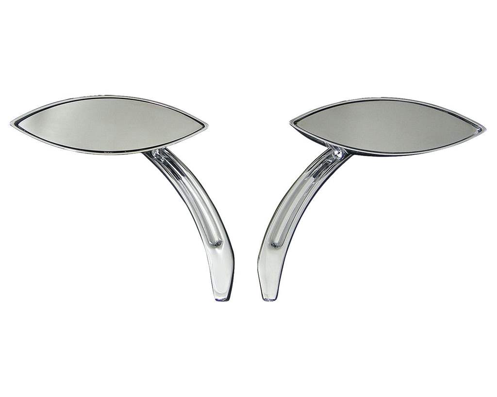 色:クロームサイズ:ミラー: 縦約45mm 横約153mmステー: 約150mm素材:スチール&ガラス内容物:ミラー×左右セット、取り付けボルトセット×2注意事項:左右セット販売です。片側単品販売は行っておりません。ミラーの下にウインカーを取り付ける事は出来ません。商品説明:まさしく猫の目!の形状がクール!ワイルド&キュートなミラーです。美しい3D曲線は見る角度で表情を変えます。こちらのミラーは左右セットとなります。04年式以降のXLにはウインカー移設なしで取り付け可能です。