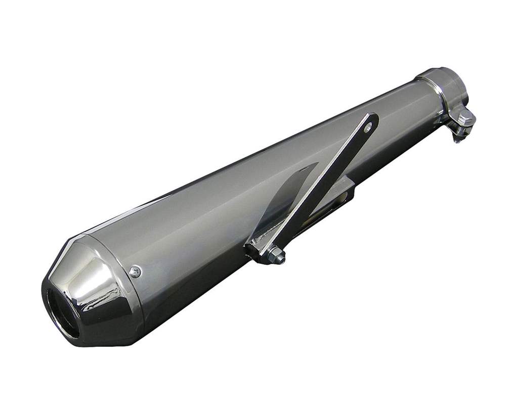 色:クロームサイズ:全長約450mm 取り付け部外径約48mm外径(一番太い所)約95mm エンド部約60mm対応口径:1-1/2in(約38mm)〜1-3/4in(約45mm)リデューサー S外径40mm M外径43mm L外径46mm素材:スチール内容物:マフラー本体×1本 クランプ×1個リデューサー×3個(S,M,L)注意事項:インナーサイレンサー取り外し可能この商品は汎用品の為取り付ける際にステー等の加工が必要になります。(ネオファクトリー社では取り付けに関する御質問等には御案内致しかねます。)車検に対応しておりません。公道使用不可。商品説明:最近よく見かけるメガホンタイプのカスタムマフラーエンドです。エンドにかけて太くなる形状は、スピード感やパワフルなイメージが出ます。大排気量のハーレーに似合います。エンドを前後で揃えたり、角度を変えたりするだけでもイメージはガラッと変わりますね。スペーサーを使用することで1-3/4in(約45mm)〜1-1/2in(約38mm)に対応します。