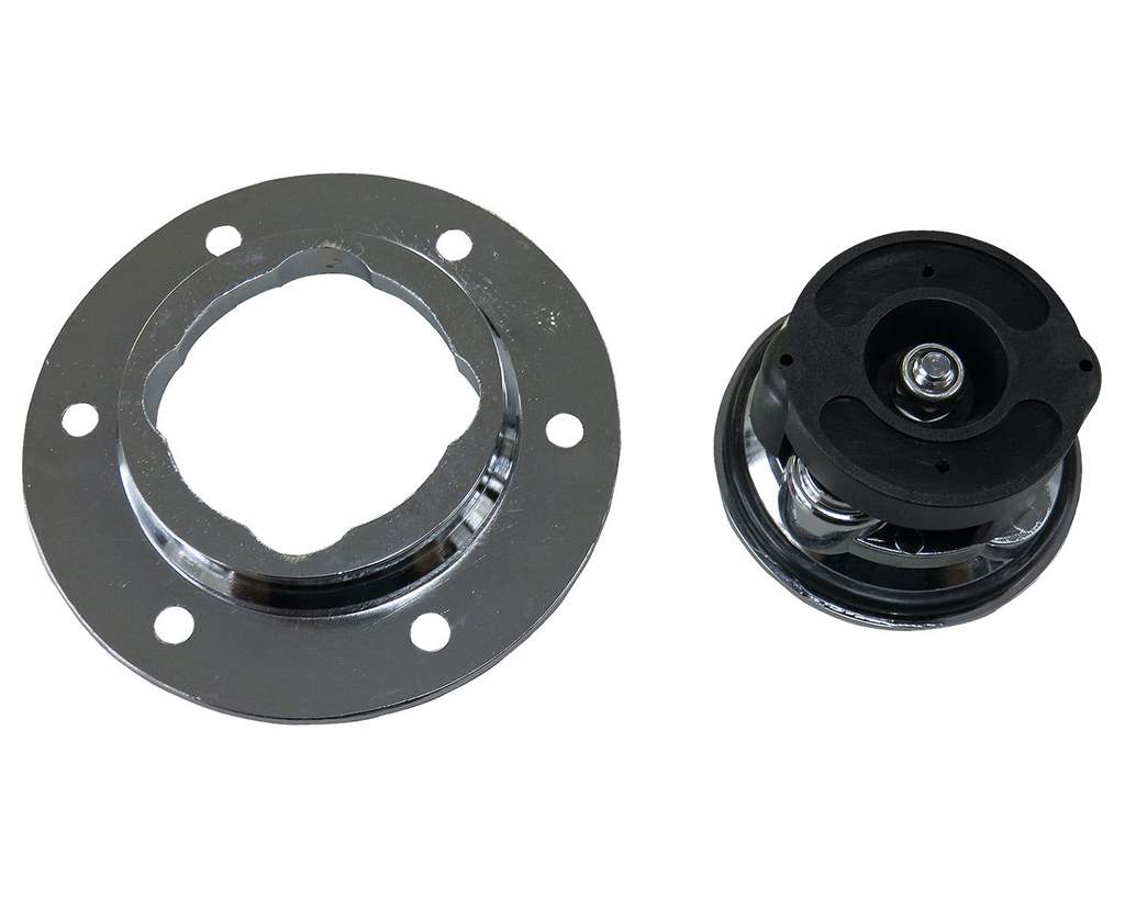色:クロームサイズ:外径:約94mm 給油口:約45mm 高さ:約34mm素材:スチール内容物:キャップ本体×1個 ガスケット×1枚固定用ボルト×6本 ボルト用O-リング×6枚専用キー×2個注意事項:取り付けにはガスタンクの大幅な加工が必要です。取り付けは技術のあるカスタムショップへご依頼ください。新品装着時、タンク相性により渋い場合がございますので、ラバーシール破損を防ぐためにシリコングリスやスプレー等で潤滑して下さい。商品説明:エアクラフト(航空機)タイプのガスキャップです。エアベント付き。レバーを起こして回すだけの簡単脱着で、給油がラクチン&しっかり固定の優れた構造を持つガスキャップです。こちらはキー付のタイプになっており、レバーを倒すと鍵穴が隠れます。見た目もレーシーでインパクト大!!ベースプレートが大きいので、給油時のガソリンこぼれも防ぎ易いですね。